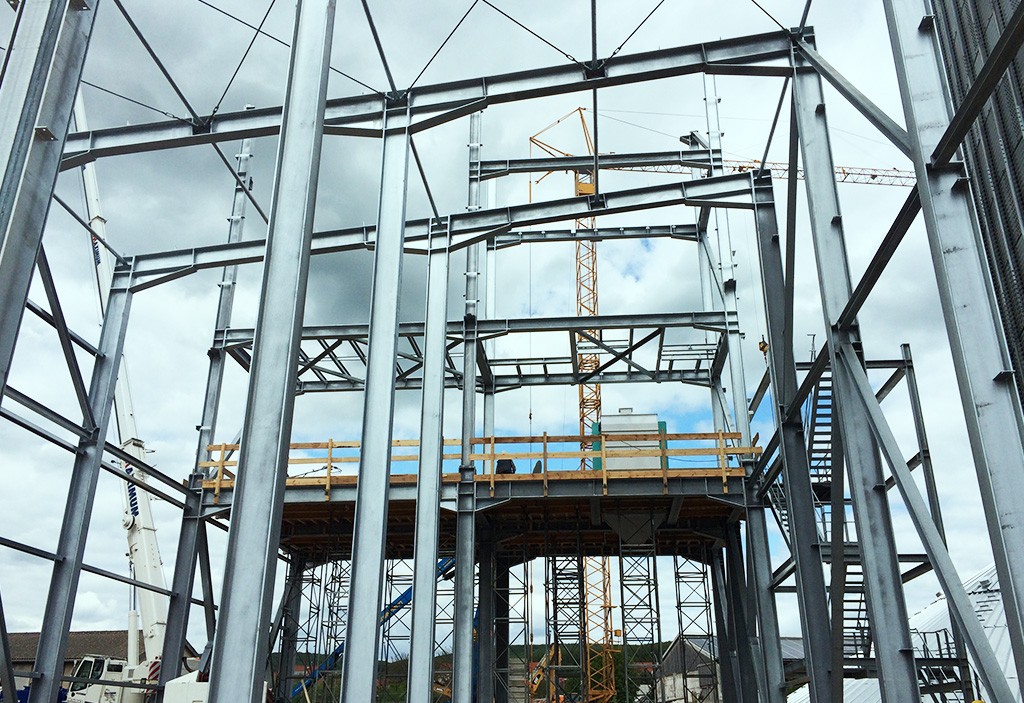 Neubau eines Maschinenhauses mit Annahme und Treppenturm.